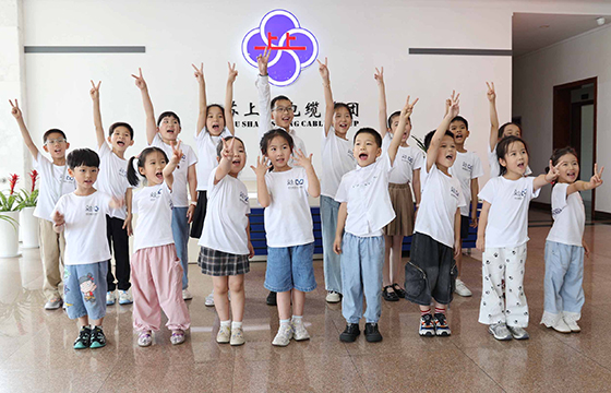 活動第二站——上上展廳,開啟了小記者們對上上發展史的探索之旅。小記者們通過歷史照片、影像資料和榮譽獎牌,全面了解上上電纜58年的奮斗歷程。當解說員介紹到上上的企業規模時,“上上電纜真的是(全球絕緣線纜企業規模排名)中國第一全球第七嗎?我不信!” 起初充滿質疑,但隨著一塊塊獎牌、一座座獎杯的展示,他們的疑問逐漸轉化為驚嘆。連續三屆榮獲中國質量獎提名獎、自主研發的全球絕緣線纜電壓等級最高——750kV交聯聚乙烯絕緣電力電纜、填補世界空白的三代核電纜……這些硬核實力是上上58年奮斗的成果。“我們溧陽這么小小的縣城,居然能孕育出規模這么大的企業,上上真了不起!”小記者們真切感受到家鄉企業的非凡實力。